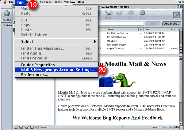 | 20)Select 'Mail & Newsgroups Accounts Settings...' from the drop-down list |