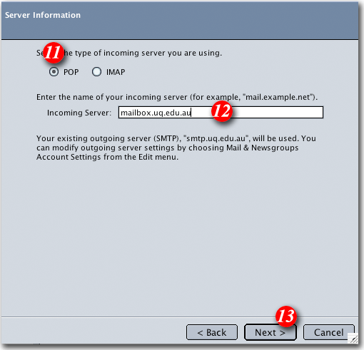| 12)Enter 'mail.cornjerker.com' as the Incoming Server name |